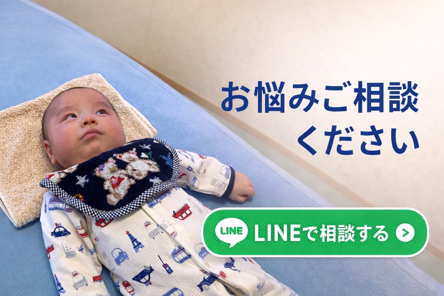 • 施術だけでなく、おうちでできる抱っこ・寝かせ方・向き癖ケア までしっかりお伝えします