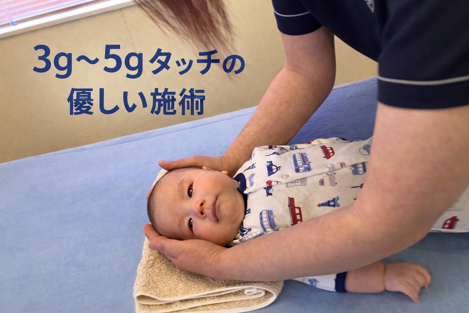 眠ってしまう赤ちゃんもいるくらい、ソフトな施術です。